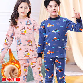 儿童保暖内衣套装加绒加厚中领男童打底女童宝宝秋衣秋裤外穿冬装