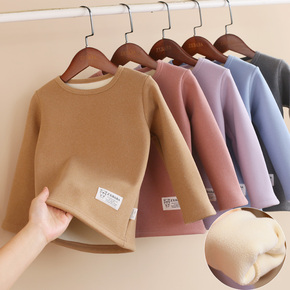 儿童加绒加厚发热绒保暖内衣冬男女童圆领T恤中大童打底衫秋衣