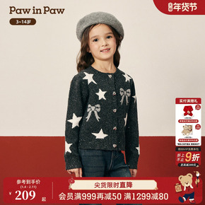 PawinPaw卡通小熊童装25年秋冬新款女童毛织开衫保暖外套柔软