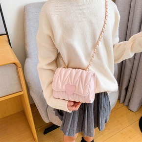 小香风女童斜挎包ins时尚洋气心形儿童包包迷你公主单肩小方包潮