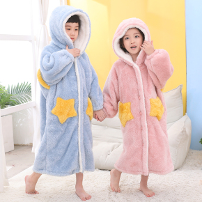 儿童睡袍秋冬季男童女童法兰绒浴袍珊瑚绒长款睡衣加厚宝宝家居服