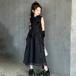 女童新中式上衣春夏新款儿童国风纱裙女孩无袖唐装汉服套装演出服