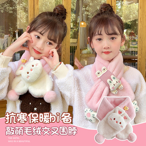 冬季儿童可爱毛绒脖套男童女孩加绒加厚保暖围巾宝宝卡通交叉围脖