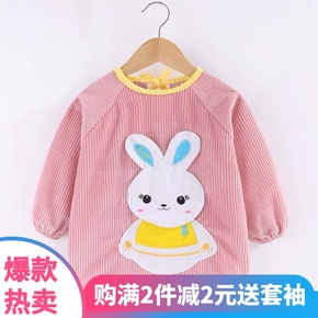 宝宝罩衣水晶绒秋冬长袖防水防脏反穿衣儿童围裙护衣婴儿吃饭围兜