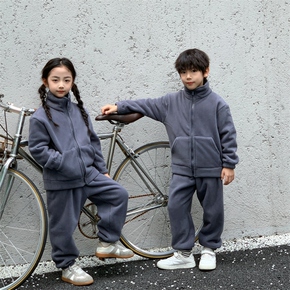 冬季奥利绒加绒加厚款外穿情侣亲子家居服套装女童大男童小孩宝宝