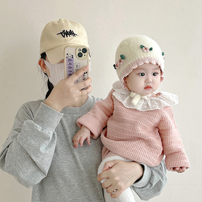 婴儿帽子秋冬款保暖针织毛线帽可爱小花朵小月龄女宝宝护耳套头帽