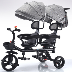 双人儿童三轮车可带人二胎溜娃神器双胞胎手推车大小宝婴儿脚踏车