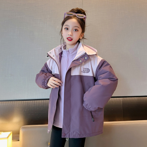 女童冬装外套2025新款儿童冲锋衣三合一可拆卸大童户外保暖防风衣