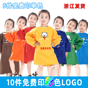 儿童画画衣幼儿园反穿衣成人长袖围裙透气大童绘画定制LOGO罩衣