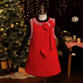 女童毛呢背心公主连衣裙子儿童装秋冬装冬季加绒2024新款毛衣套装