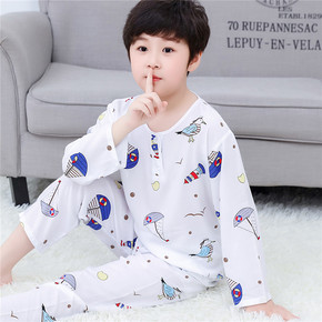 儿童棉绸睡衣薄款夏季长袖男童男孩绵绸空调家居服睡衣套装