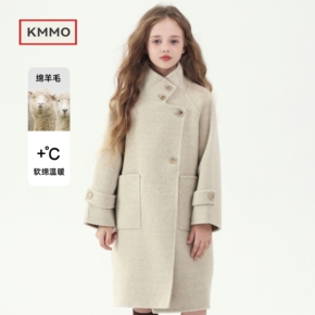 KMMO儿童双面羊绒大衣2025秋冬季新款女童呢子外套中长款加绒加厚