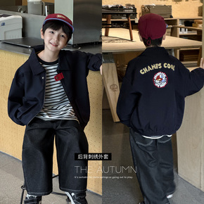 童酷2025男童秋款湖州织里童装洋气后背个性刺绣翻领拉链儿童外套