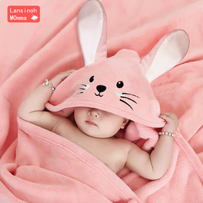 婴儿浴巾带帽斗篷珊瑚绒新生宝宝洗澡加厚比纯棉吸水超软儿童浴袍