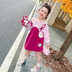 女童草莓熊玩偶连衣裙春秋款2024新款儿童长袖女宝宝秋季秋装裙子