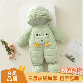 宝宝冬季加厚连体衣包脚外出防风衣婴幼儿棉服新生儿夹棉加绒抱被