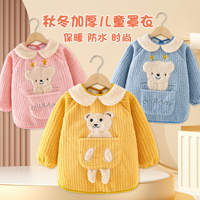 宝宝罩衣冬季外穿洋气加厚儿童围裙防水男女小孩婴儿吃饭围兜护衣