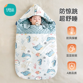 婴儿睡袋秋冬厚款防惊跳安抚宝宝豆豆睡袋抱被两用新生儿防踢被子