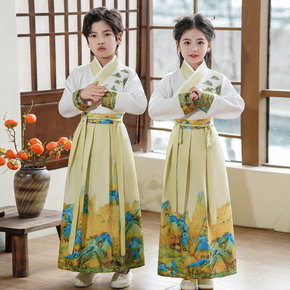 儿童汉服男女童唐装国学服中国风表演服小学生开笔礼三字经演出服