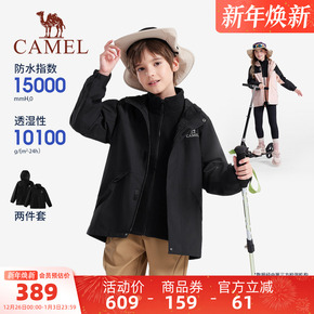 骆驼儿童冲锋衣三合一可拆卸厚户外连帽外套防风防水男女童滑雪服