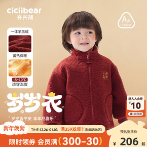 [岁岁衣新年羊羔绒]齐齐熊宝宝摇粒绒外套男童秋冬儿童红色一体绒