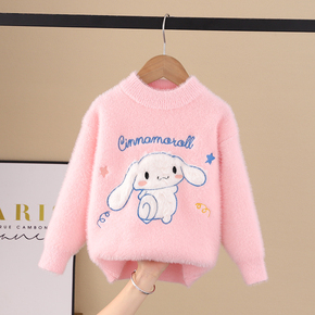 女童水貂绒毛衣加厚中小童洋气圆领针织衫不起球秋冬儿童装女宝宝