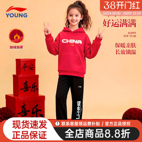 李宁儿童卫衣套装马年男女大童新年款本命年红色运动童装衣服加绒