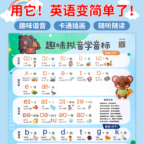 小学英语音标和自然拼读发音规则表趣味拟音启蒙48个国际音标挂图