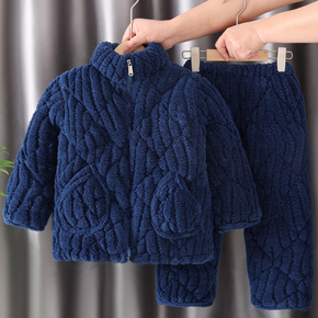 儿童睡衣加绒超厚法兰绒冬季棉袄小中大童男女宝宝家居服拉链套装