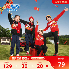 福燈贺岁|特步童装儿童加绒红色卫衣男童拼接上衣2026年秋冬新款