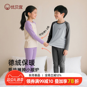 优贝宜德绒保暖套装儿童内衣秋装两件套男童女童家居服秋衣秋裤冬
