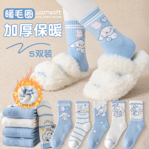 女童玉桂狗袜子加厚加绒秋冬毛圈袜学生冬天保暖厚袜卡通中筒冬天