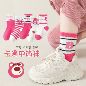女童袜子春秋款洋气儿童纯棉中筒袜草莓熊潮女孩宝宝夏季卡通长筒
