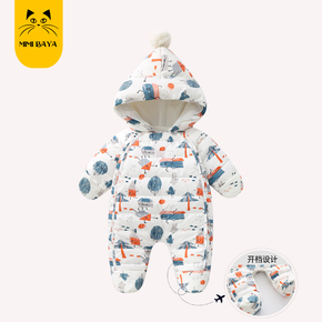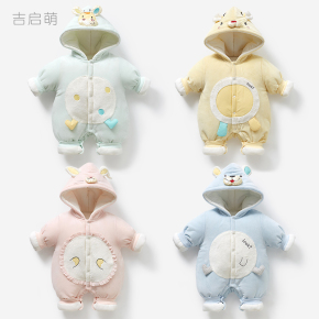 婴儿连体衣春秋冬男女夹棉保暖衣服加厚外出哈衣套装新生宝宝冬装