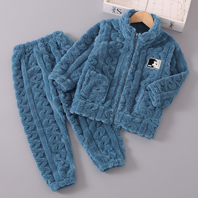 男童珊瑚绒睡衣秋冬季儿童加厚法兰绒套装男孩女童宝宝冬款家居服