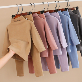 儿童磨毛德绒发热内衣套装冬男童半高领打底衫厚秋衣裤女童保暖衣