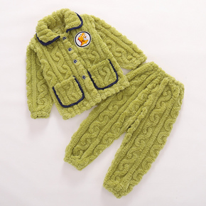 儿童珊瑚绒睡衣秋冬季男童女孩加厚法兰绒女童宝宝冬款家居服套装