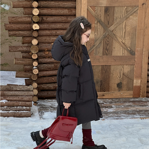 女童羽绒服冬装2025新款中长款加厚90白鸭绒韩版儿童过膝三防外套