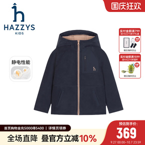 hazzys哈吉斯童装男女童外套2025秋新中大童舒适摇粒绒连帽上衣