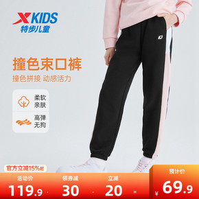 特步童装女童侧边拼接运动裤2025夏季新款儿童秋装长裤中大童裤子