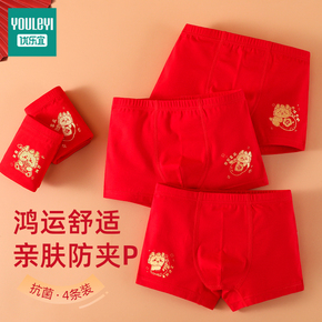 儿童纯棉内裤红色男童本命年短裤中大童男孩四角平角裤全棉100%