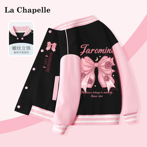 拉夏贝尔女童外套春秋款女大童时髦秋装上衣洋气开衫儿童棒球服潮