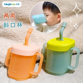 禾果宝宝斜口杯小容量喝水婴儿儿童学饮吸管杯防摔带刻度直饮水杯