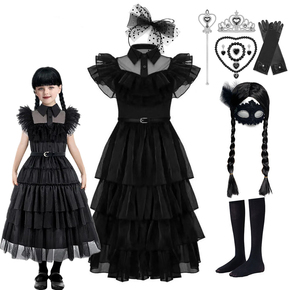 奇幻电视剧《星期三》中的女主角cos服亚当斯一家黑色雪纺女孩裙