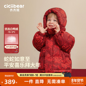 [平安喜乐拜年服]齐齐熊宝宝羽绒服男童外套新年红色儿童加厚保暖