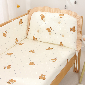 婴儿床床围栏软包防撞a类纯棉加高防摔四件套五件套拼接床围挡布