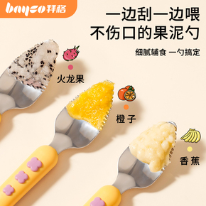 拜格刮泥勺婴儿宝宝专用双头锯齿辅食餐具硅胶勺子儿童吃水果工具