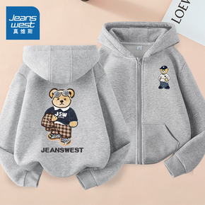 [抗起球]齐齐熊男童加绒卫衣秋冬款宝宝连帽上衣外套儿童保暖衣服