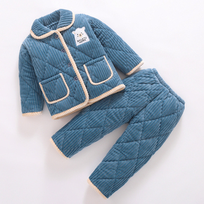 冬季儿童法兰绒睡衣男童男孩加厚款夹棉女童宝宝珊瑚绒家居服套装