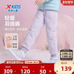 特步童装女童保暖羽绒裤2025秋冬新款儿童运动裤大童长裤加厚裤子